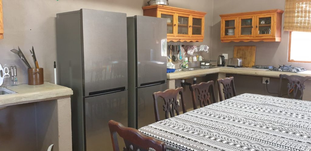 Our kitchen and dining facility is fully equipped with 2 seperate workstations – 2 of each: fridge, 4 plate gas stove, microwave oven, pop up toaster, kettle, all cutlery and all crockery.
